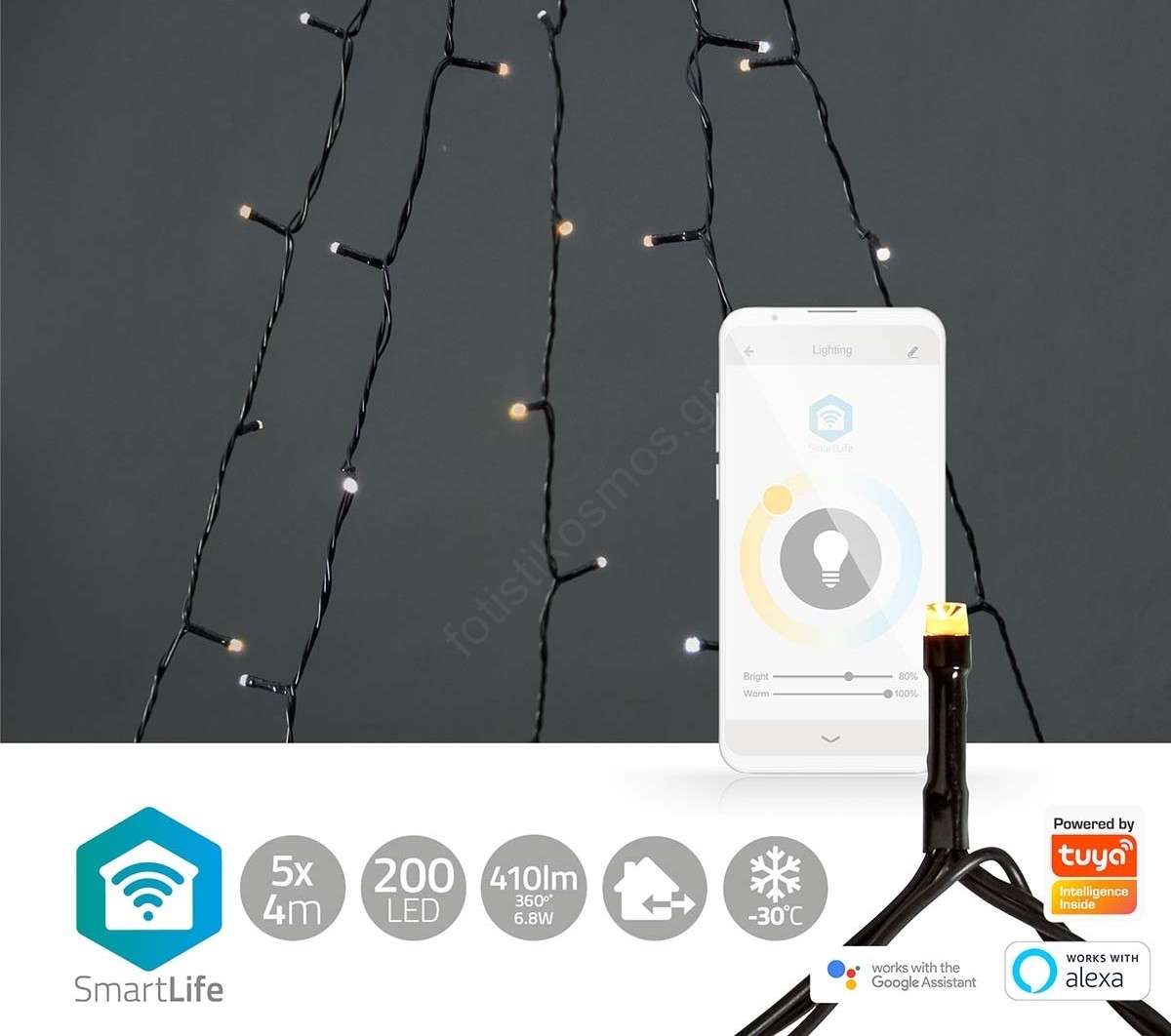 LED Εξωτερική χριστουγεννιάτικη κουρτίνα 200xLED/8 λειτουργίες 5x4m IP65 Wi-Fi Tuya από θερμό έως ψυχρό λευκό