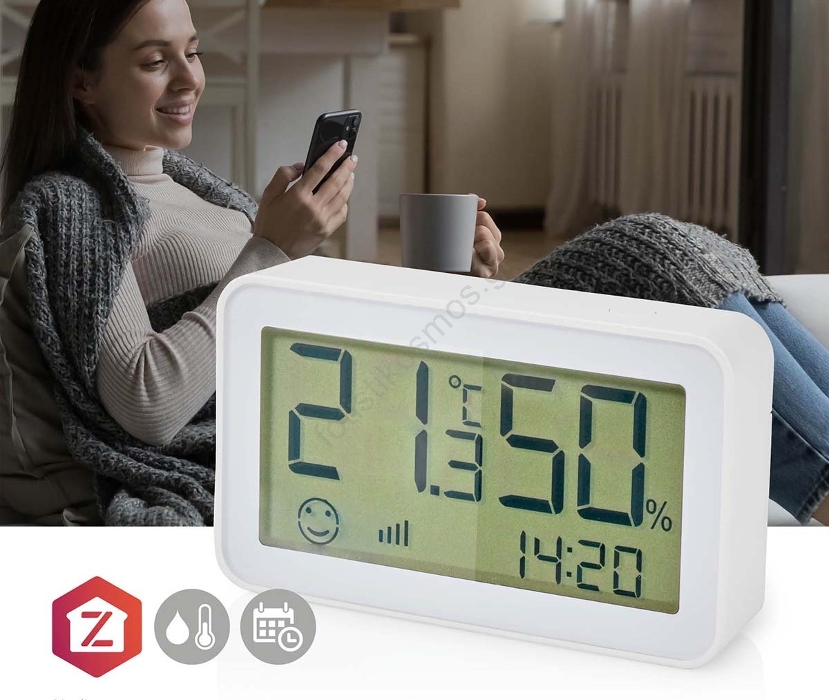 • Εμφανίζει ζωντανά τη θερμοκρασία και την υγρασία σε μια ευανάγνωστη οθόνη και αποστέλλει αυτές τις πληροφορίες στην εφαρμογή SmartLife (συμβατή με iOS και Android).