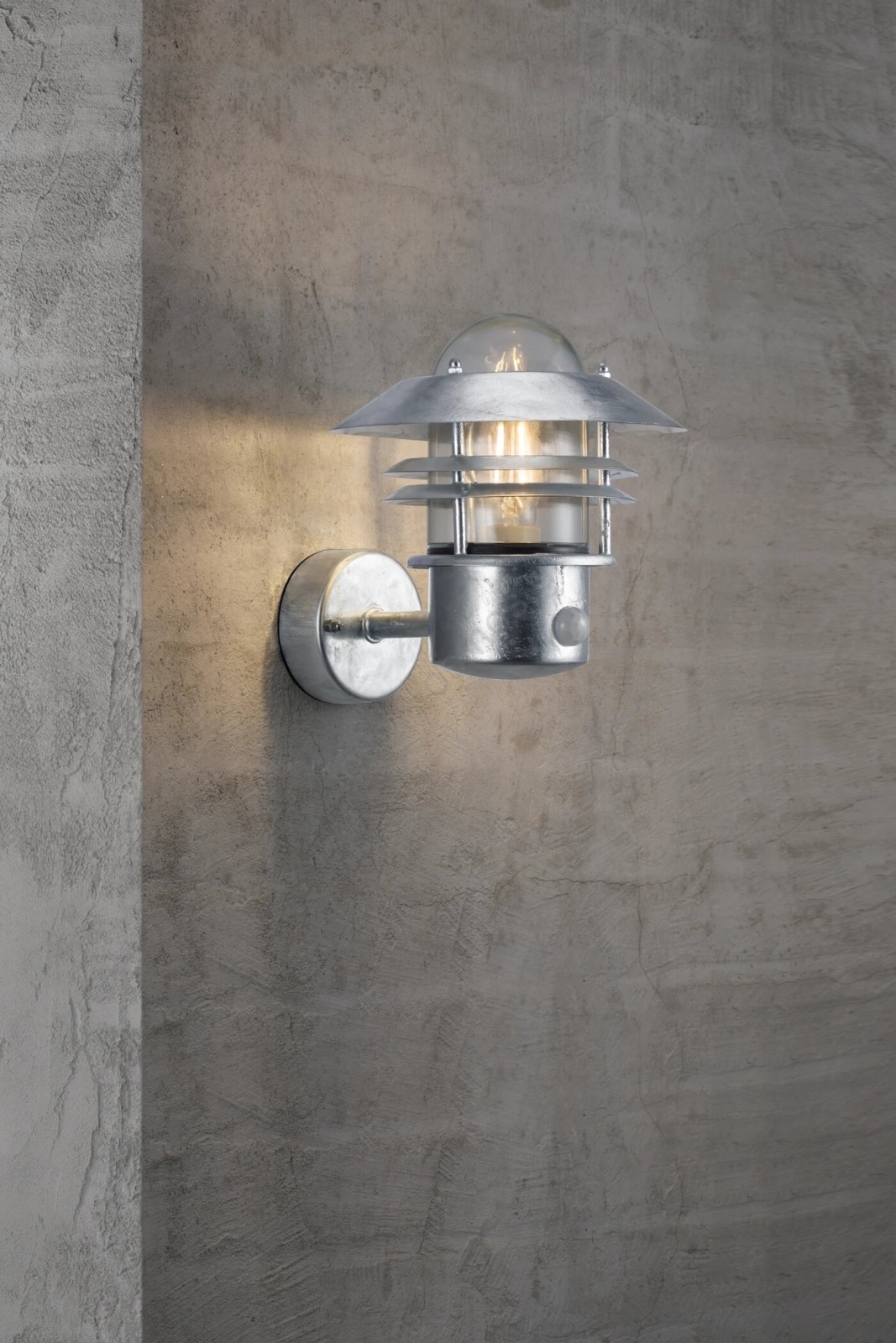 Nordlux - Φωτιστικό τοίχου εξωτερικού χώρου με αισθητήρα BLOKHUS 1xE27/60W/230V IP54 ασημί
