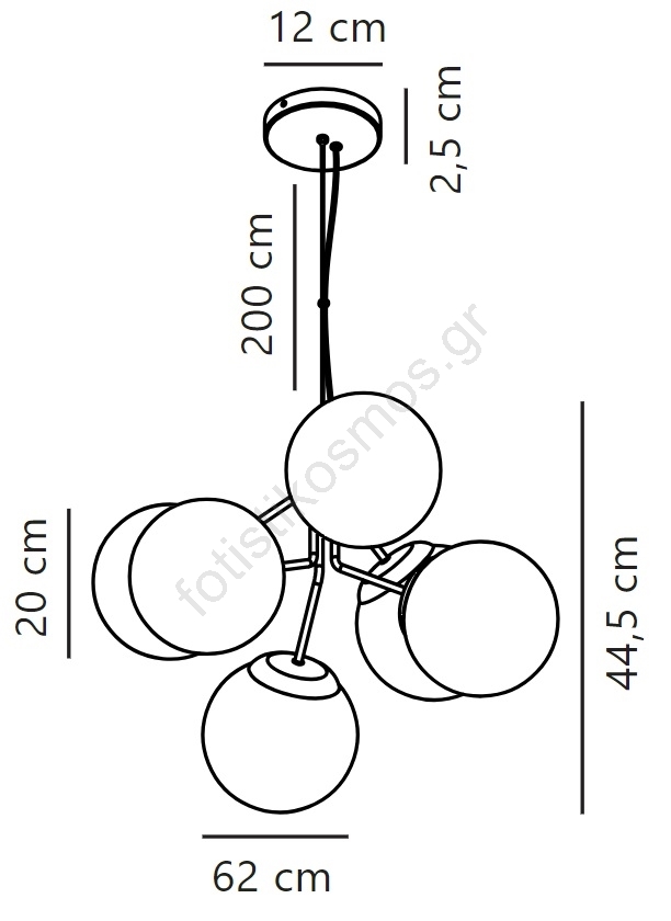 • Nordlux - Κρεμαστό φωτιστικό οροφής IVONA 6xE27/28W/230V μαύρο