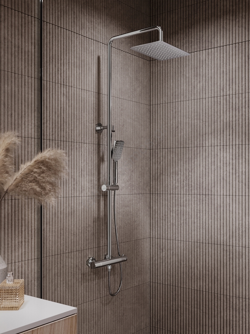 • Αυτή η σετ ντους με θερμοστατική μπαταρία αποτελεί μια κομψή προσθήκη σε κάθε μπάνιο.