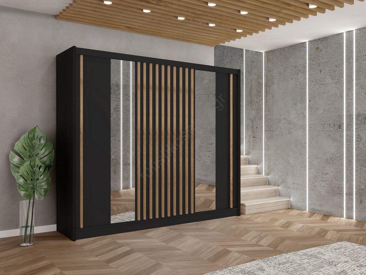 Ντουλάπα με καθρέφτη SANTINO 250x215 cm μαύρη/δρυς craft | Fotisti kosmos