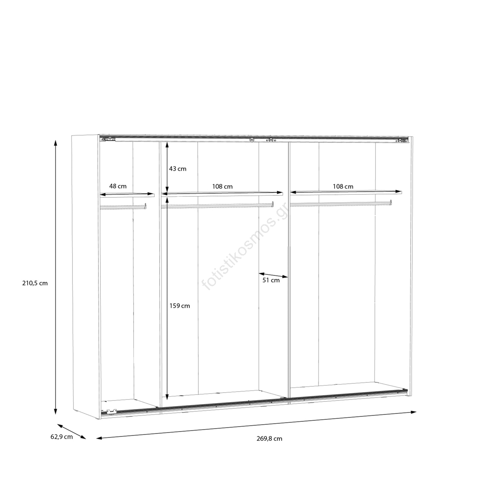 • Η ντουλάπα διαθέτει ράβδους κρεμάστρας, ράφια και μεγάλο αποθηκευτικό χώρο για τα ρούχα, τις τσάντες και τα εποχιακά είδη.