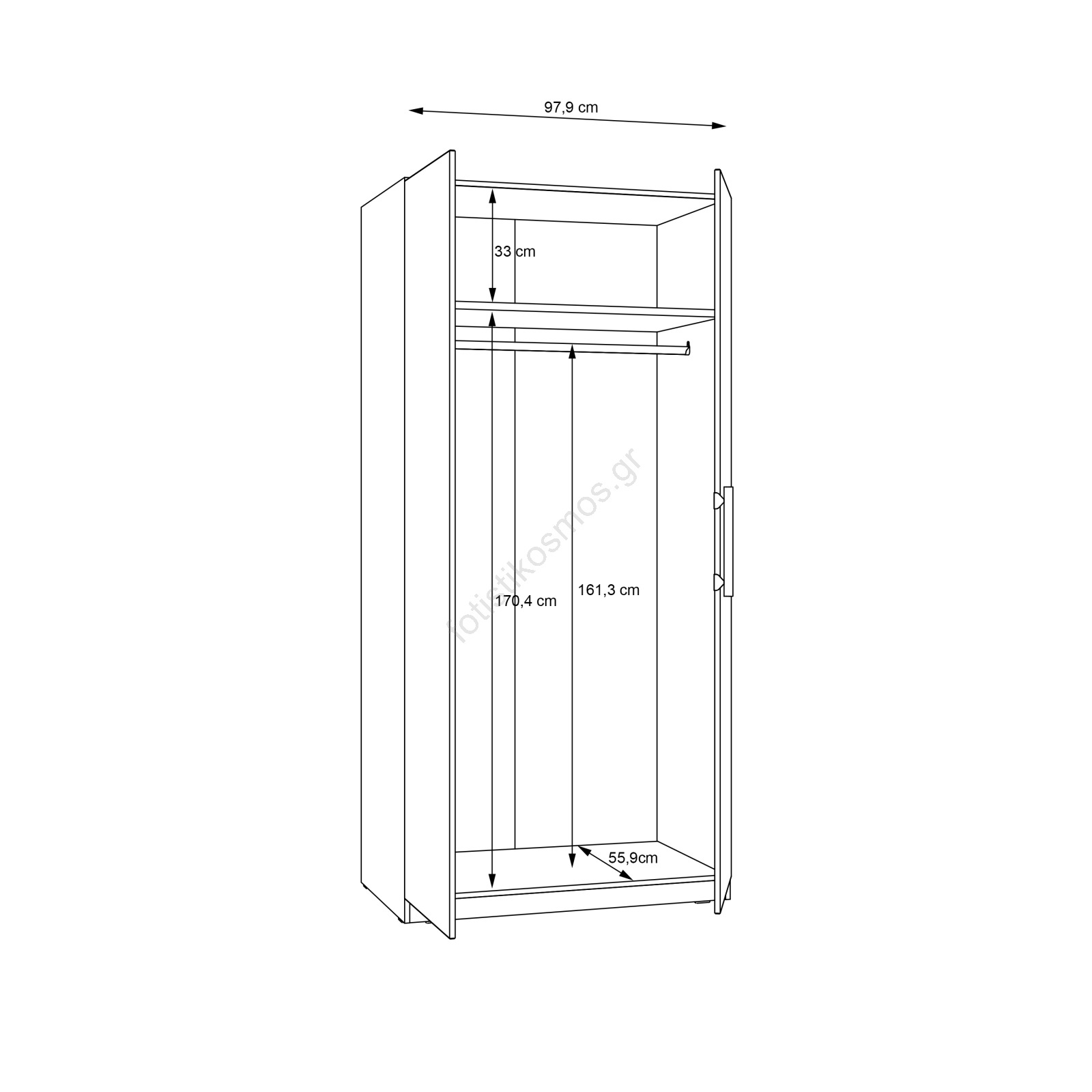 • Η ντουλάπα διαθέτει ράγα κρεμάσματος, ράφι και μεγάλο αποθηκευτικό χώρο για τα ρούχα, τις τσάντες και τα εποχιακά σας αντικείμενα.