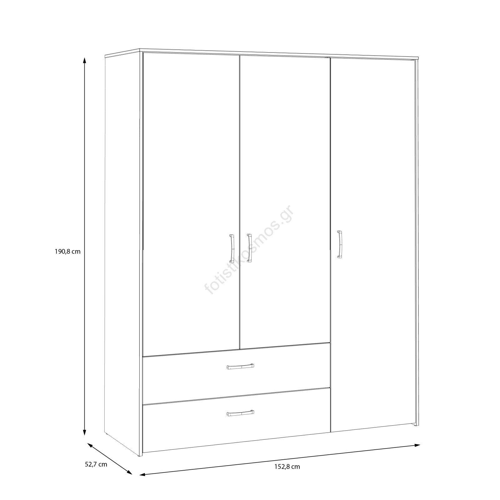 • Η ντουλάπα διαθέτει ράγα ρούχων, ράφια, συρτάρια και ευρύχωρο αποθηκευτικό χώρο για τα ρούχα, τις τσάντες και τα εποχιακά σας αντικείμενα.