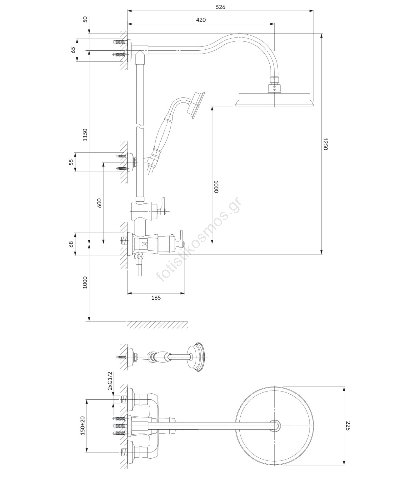 OMNIRES AM5244/6CR - Σετ ντους με θερμοστατική μπαταρία ARMANCE, γυαλιστερό χρώμ | Fotisti kosmos