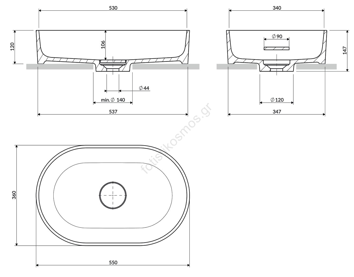 • Ο νιπτήρας προορίζεται για τοποθέτηση πάνω σε πάγκο, προσφέροντας ευελιξία στη θέση και συνδυασμό με διάφορους τύπους επιφανειών μπάνιου.