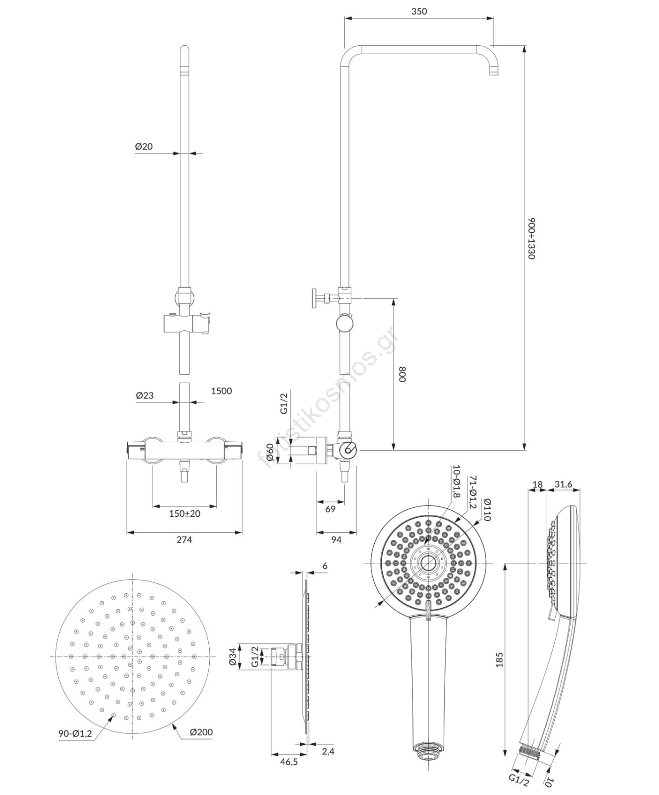 • Ρυθμιζόμενο ύψος: 90 - 130 cm.