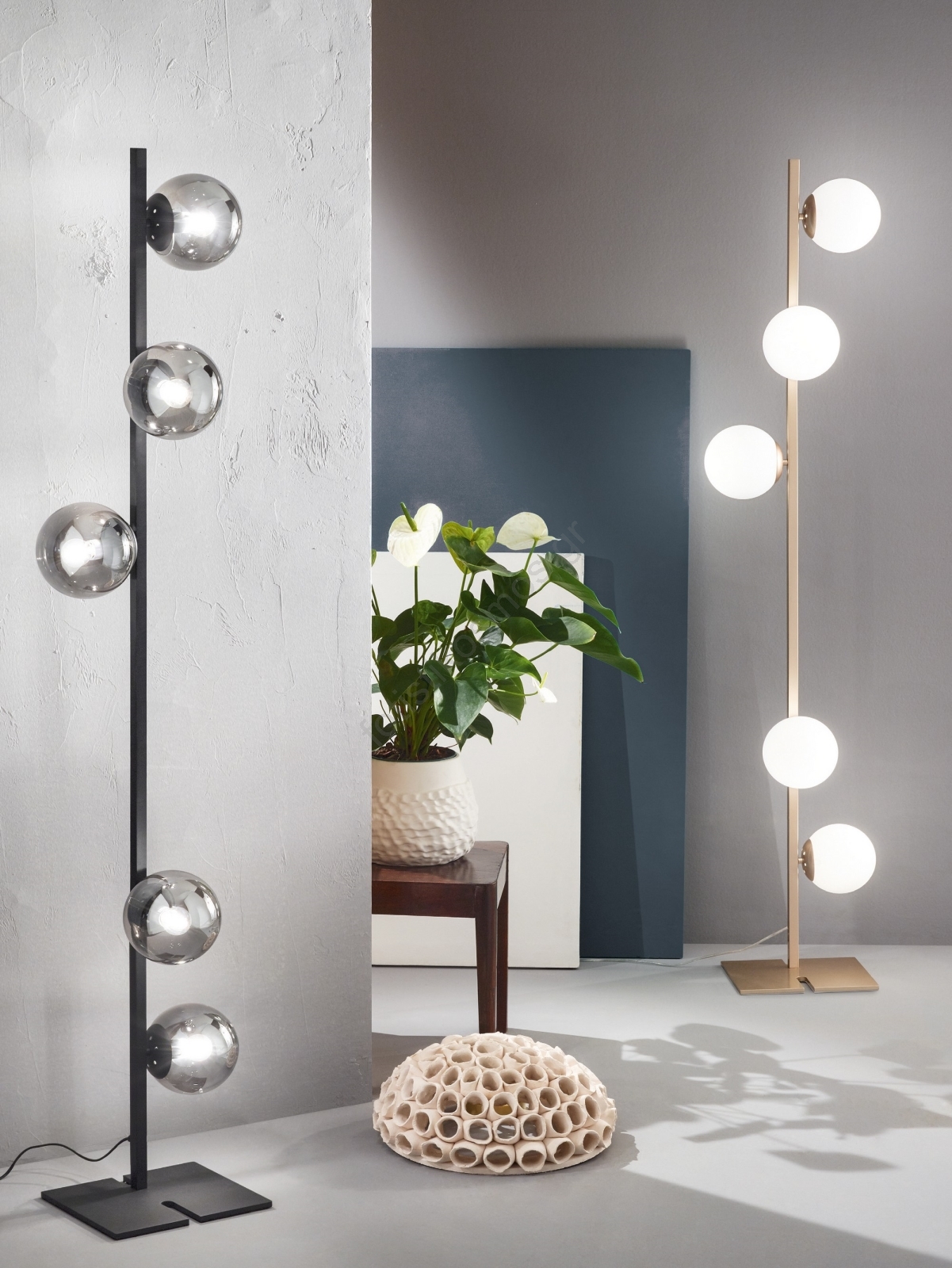 • Ondaluce - Επιδαπέδιο φωτιστικό MONILE 5xE14/10W/230V καπνιστό μαύρο