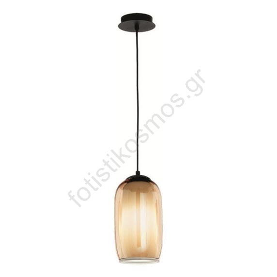 Ondaluce - Κρεμαστό φωτιστικό με καλώδιο BONNIE 1xE27/15W/230V, διάμετρος 15,5 cm, μαύρο/καπνιστό μπεζ