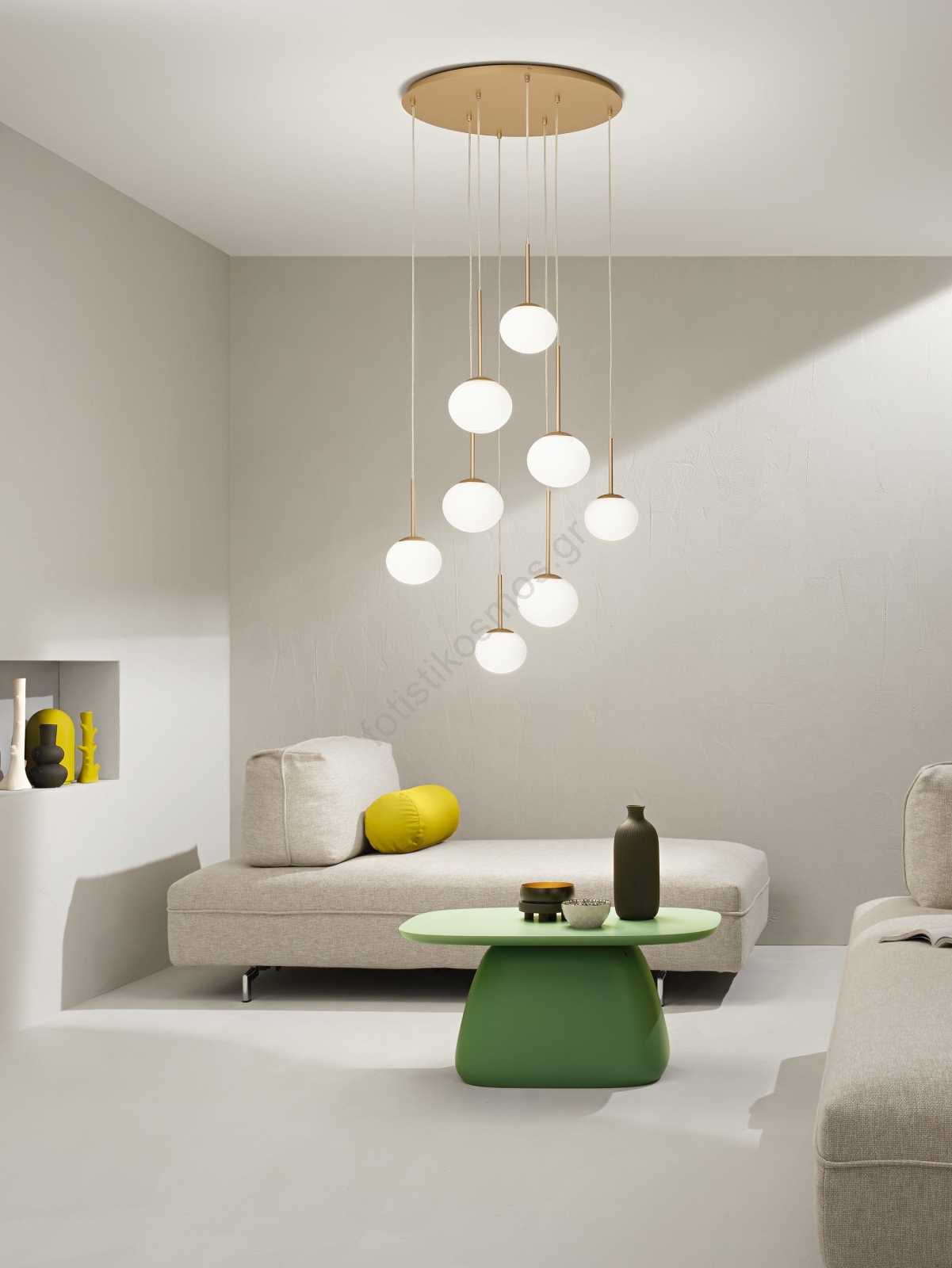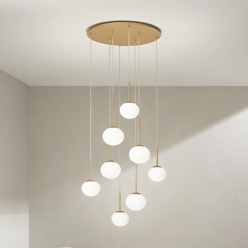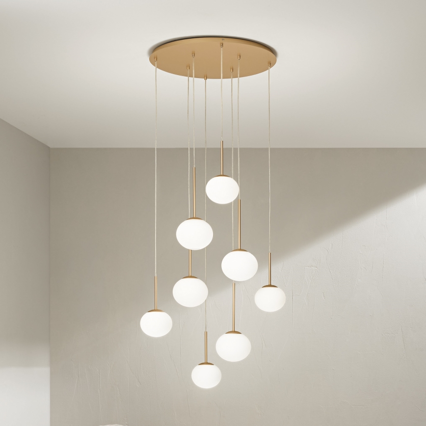 • Ondaluce - Κρεμαστό φωτιστικό με ανάρτηση σε σύρμα JEWEL 8xE14/10W/230V, διάμ. 70 cm, χρυσό/λευκό