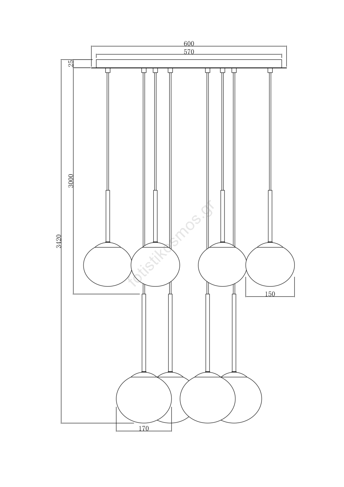 • Ondaluce - Κρεμαστό φωτιστικό με καλώδιο JEWEL 8xE14/10W/230V Ø 70 εκ., καπνιστό μαύρο