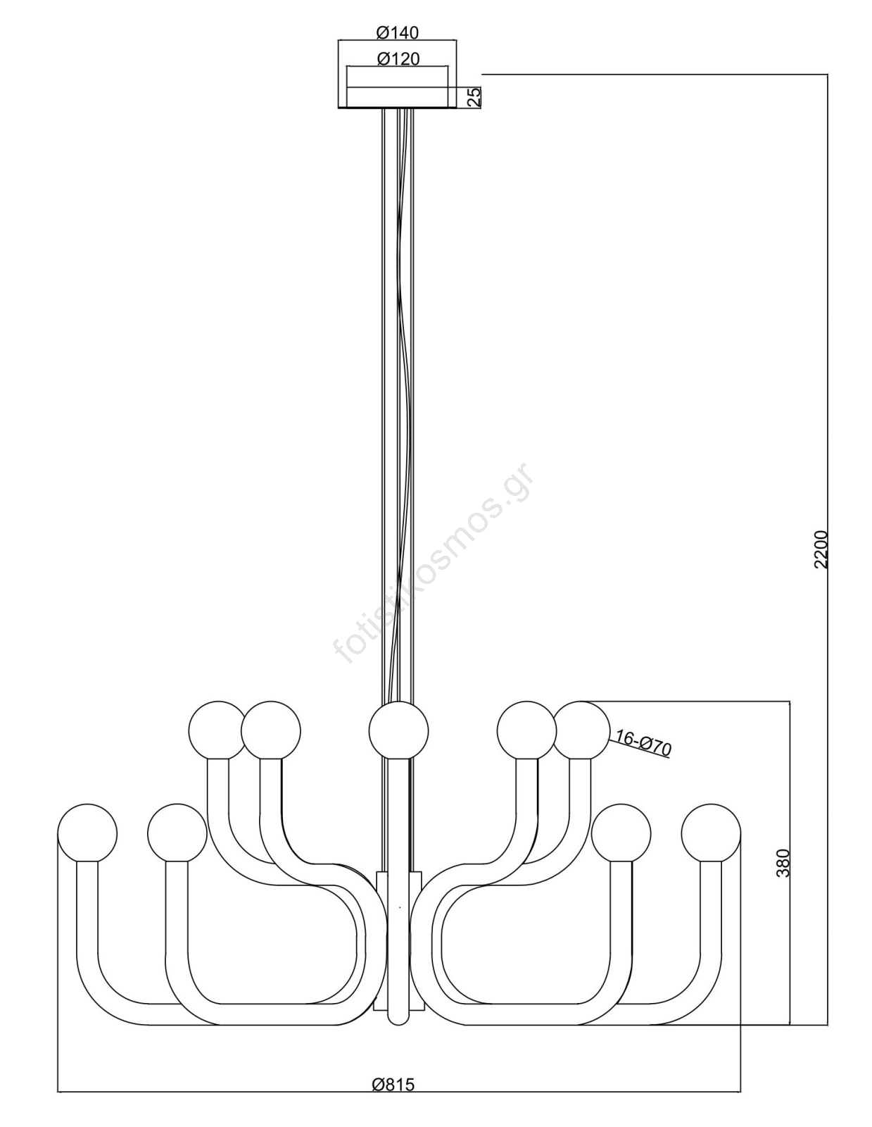 • Ondaluce - Κρεμαστό φωτιστικό με καλώδιο DERBY 16xG9/7W/230V διάμ. 81,5 εκ. μαύρο