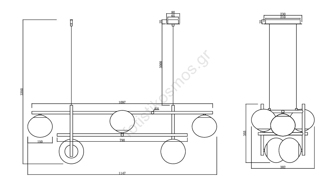 • Ondaluce - Κρεμαστό φωτιστικό σε καλώδιο JEWEL 6xE14/10W/230V καπνιστό μαύρο