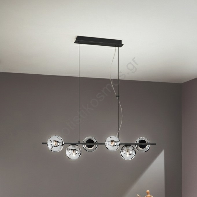 Ondaluce - Κρεμαστό φωτιστικό με καλώδιο MONILE 6xE14/10W/230V μαύρο/καπνιστό μαύρο