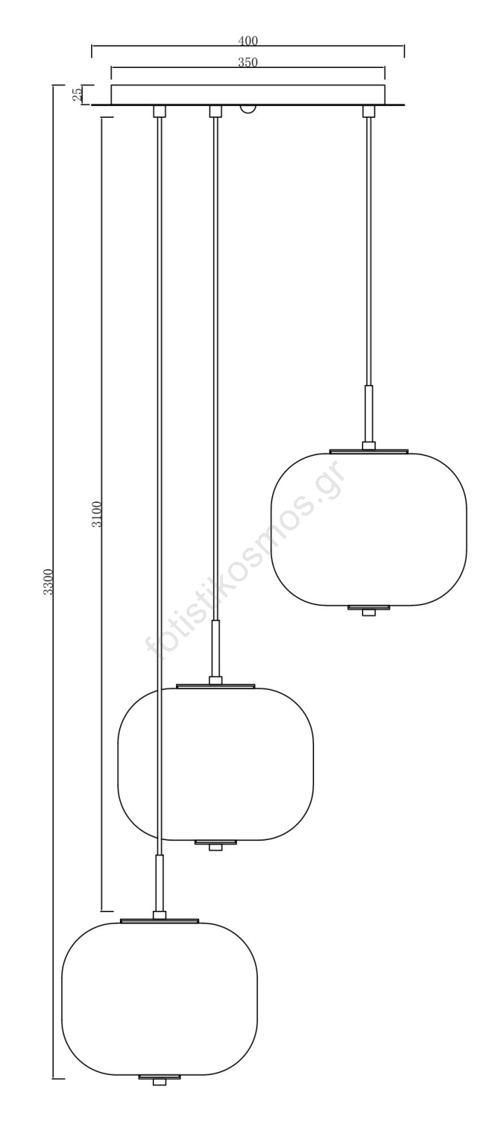 Ondaluce - Κρεμαστό φωτιστικό με καλώδιο ODETTE 3xE14/10W/230V Ø 43 cm χρυσό/καπνιστό πολύχρωμο