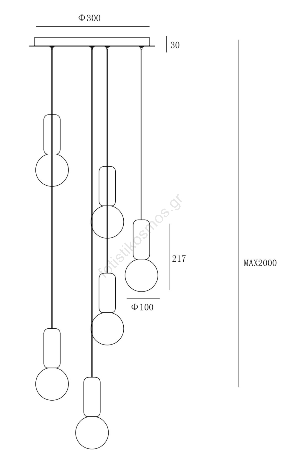 Ondaluce - Κρεμαστό φωτιστικό με καλώδιο ROCK 6xG9/7W/230V Ø 35 εκ. μπετόν/καφέ/γκρι/λευκό