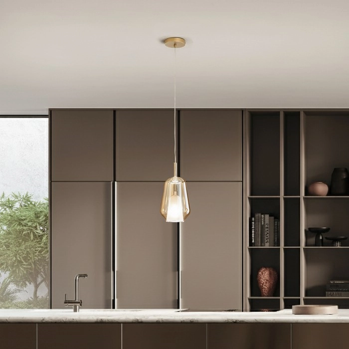 • Ondaluce - Κρεμαστό φωτιστικό με καλώδιο THELMA 1xE27/15W/230V καπνιστό μπεζ