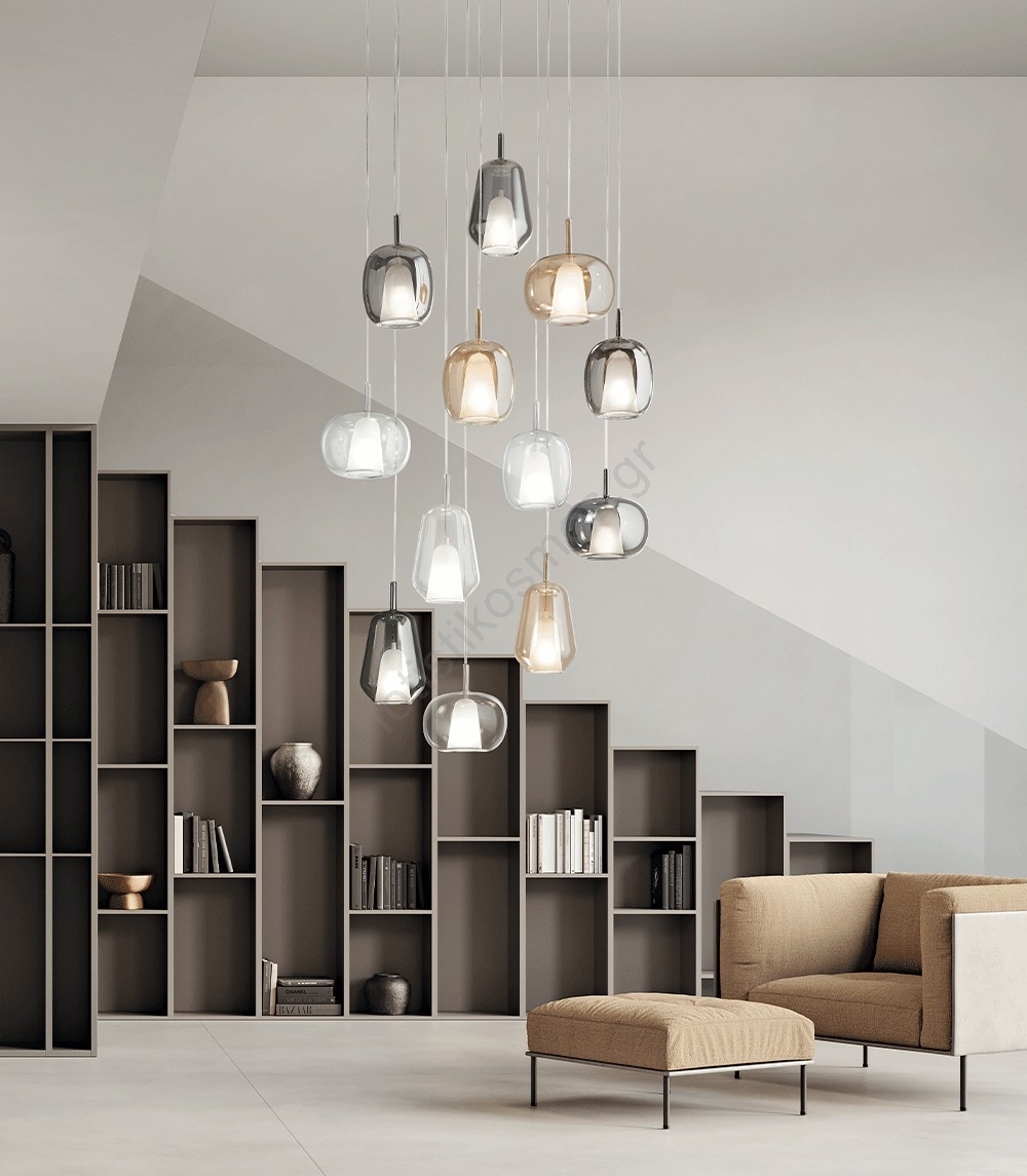 • Ondaluce - Κρεμαστό φωτιστικό με καλώδιο THELMA 1xE27/15W/230V καπνιστό γκρι