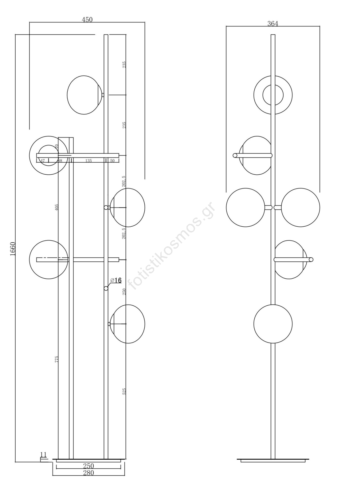 • Ondaluce - Επιδαπέδιο φωτιστικό JEWEL 6xE14/10W/230V καπνιστό μαύρο