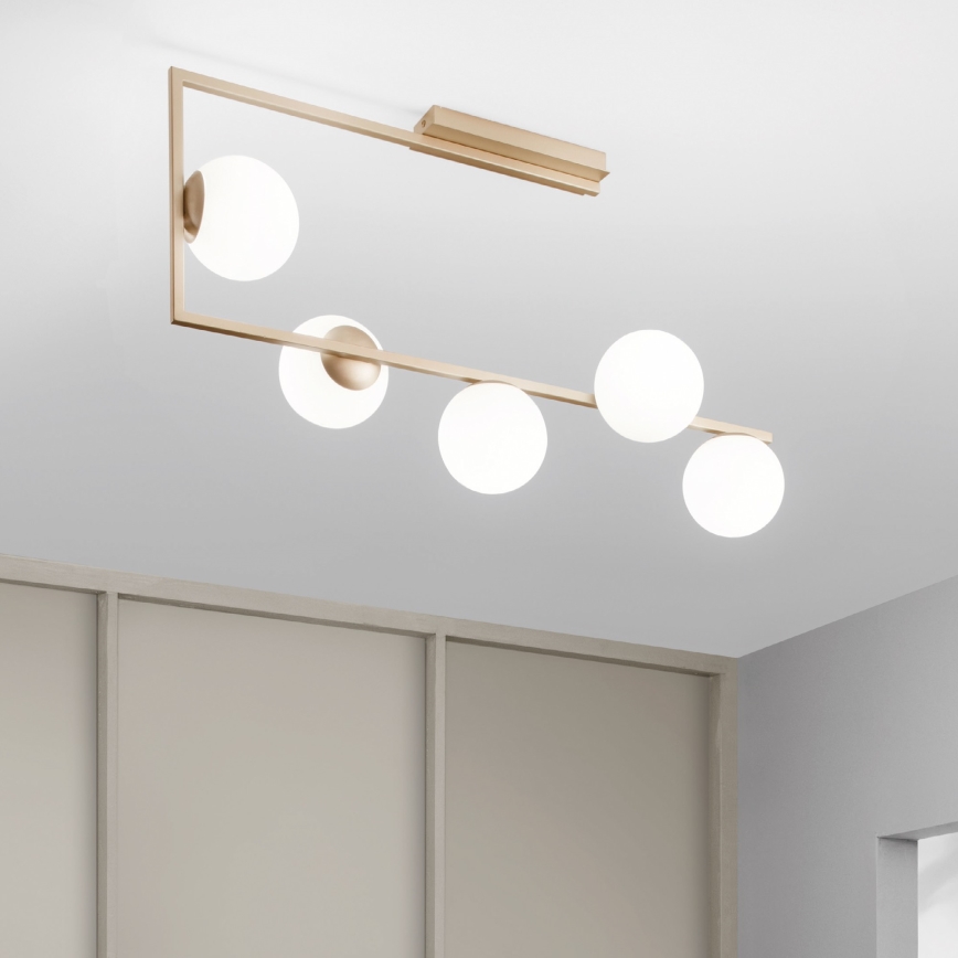 Ondaluce - Πολυέλαιος σε ράβδο MONILE 5xE14/10W/230V χρυσό/λευκό
