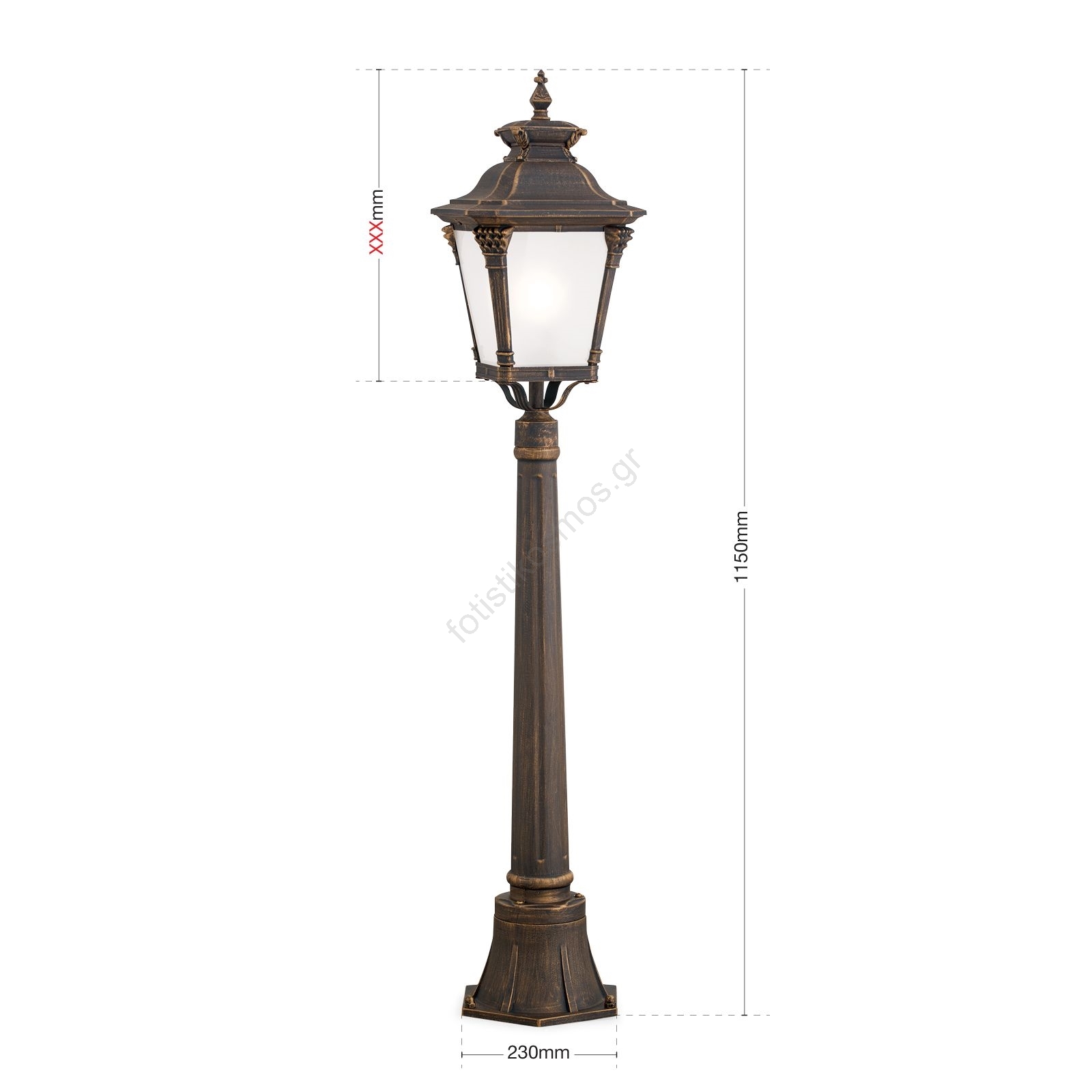Εξωτερικό φωτιστικό AIKO 1xE27/60W/230V 115 cm IP23 μπρονζέ/πατίνα χαρακτηρίζεται από ωραίο και λειτουργικό design.  Μια λάμπα με ντουί E27 είναι κατάλληλη για το φωτιστικό. Εδώ, μπορείτε να αγοράσετε και άλλους λαμπτήρες σε συμφέρουσες τιμές. Θα αποκτήσετε μια εντυπωσιακή προσθήκη στο σπίτι σας.