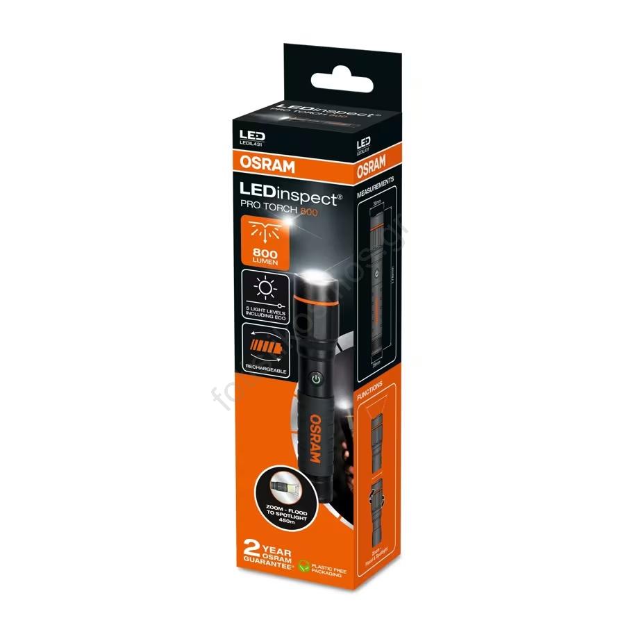 • Ο φακός με εντυπωσιακή απόδοση 800 lumen προσφέρει ισχυρό, υψηλής έντασης φωτισμό.