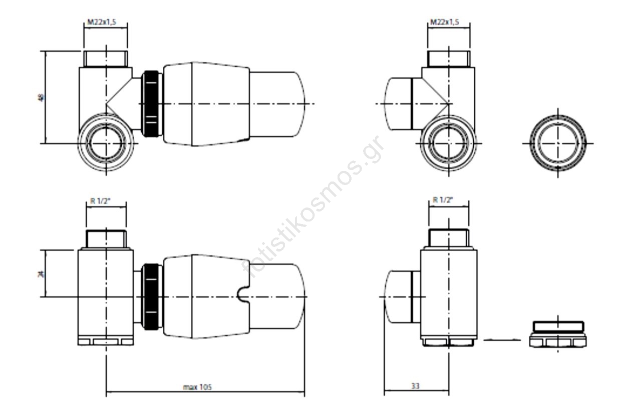 P.M.H. INTER-RW - Βαλβίδα με θερμοστατική κεφαλή INTER δεξιά/λευκή | Fotisti kosmos