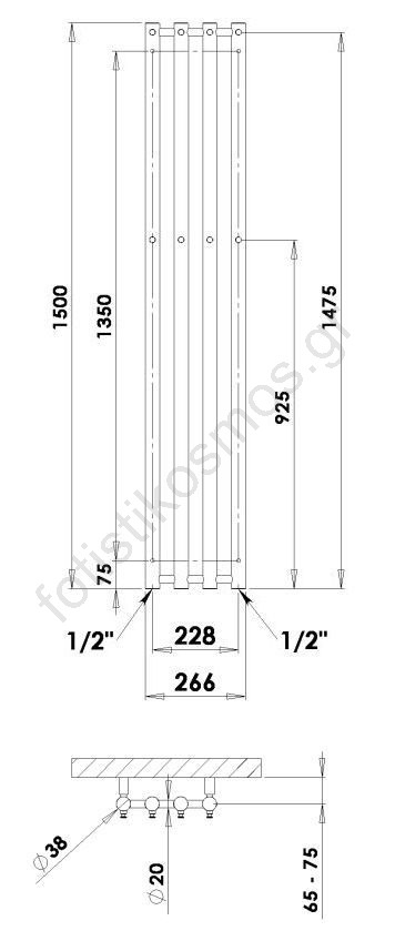 P.M.H. R2B - Πετσετοκρεμάστρα-θερμαντικό σώμα μπάνιου ROSENDAL 350W 150 cm μαύρο | Fotisti kosmos