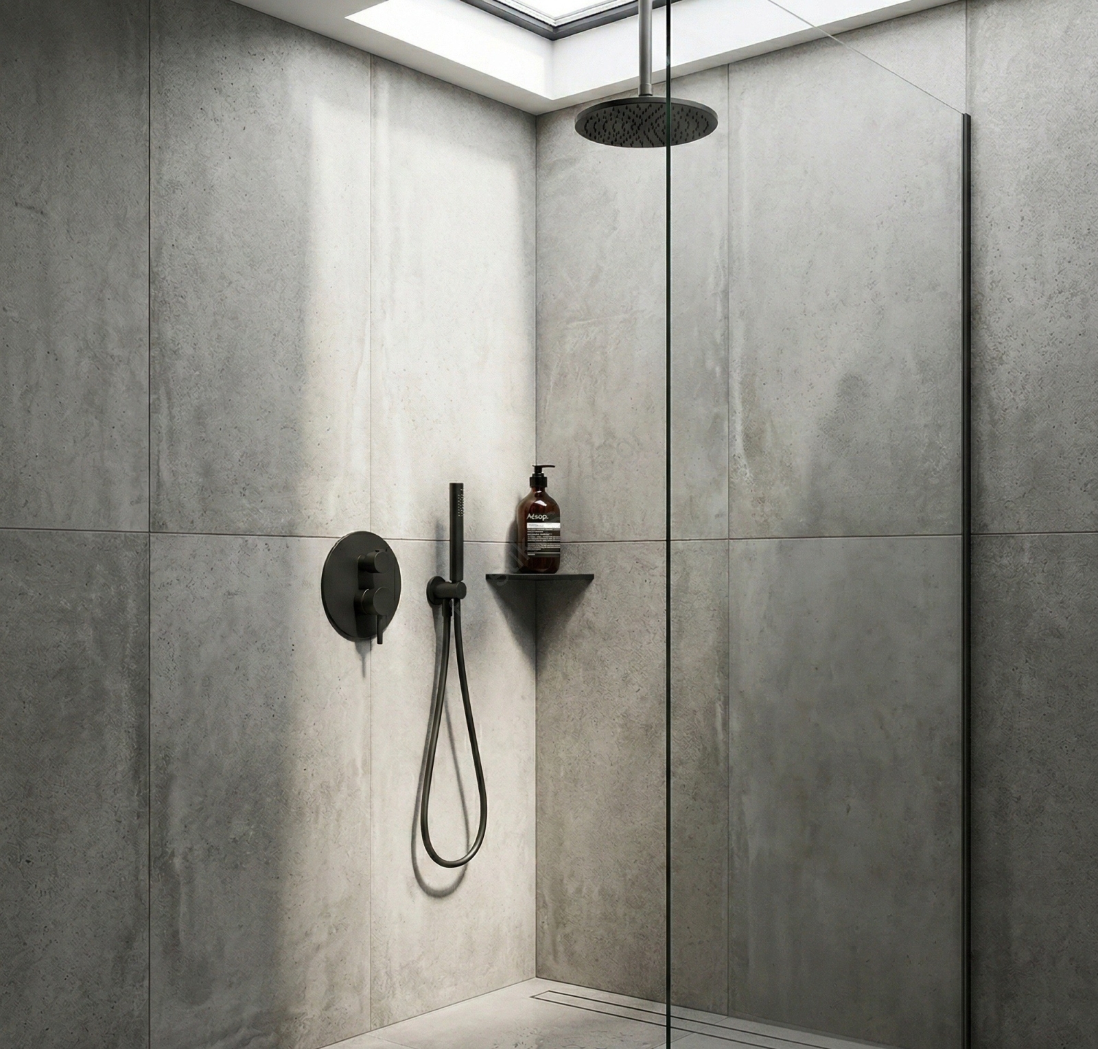 • Κομψό ματ μαύρο φινίρισμα για μοντέρνα μπάνια.