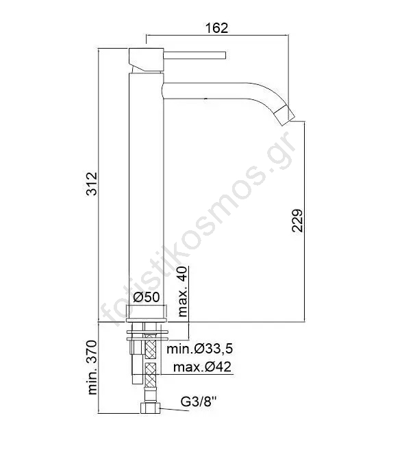 • Κατάλληλη για επιτραπέζιους νιπτήρες χάρη στο αυξημένο ύψος.