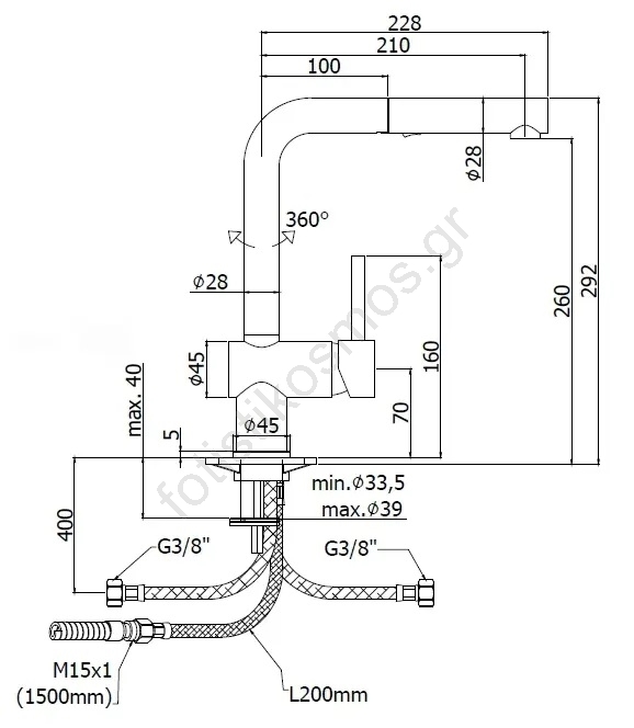• Περιστρεφόμενο στόμιο για άνετη εργασία στον νεροχύτη.