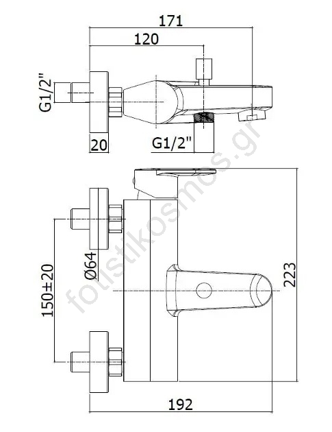 • Επιτοίχια μπαταρία μπανιέρας με μοχλό σε κομψό και διαχρονικό σχέδιο.