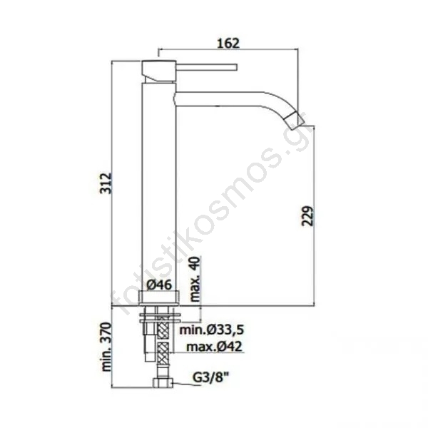 • Ψηλή επιτραπέζια μπαταρία νιπτήρα με μοχλό χειρισμού.