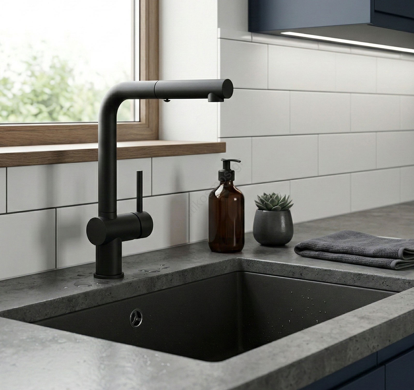 • Μπαταρία κουζίνας πάγκου με μοχλό χειρισμού.