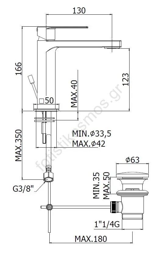 • Κατάλληλη για εγκατάσταση σε μία οπή.