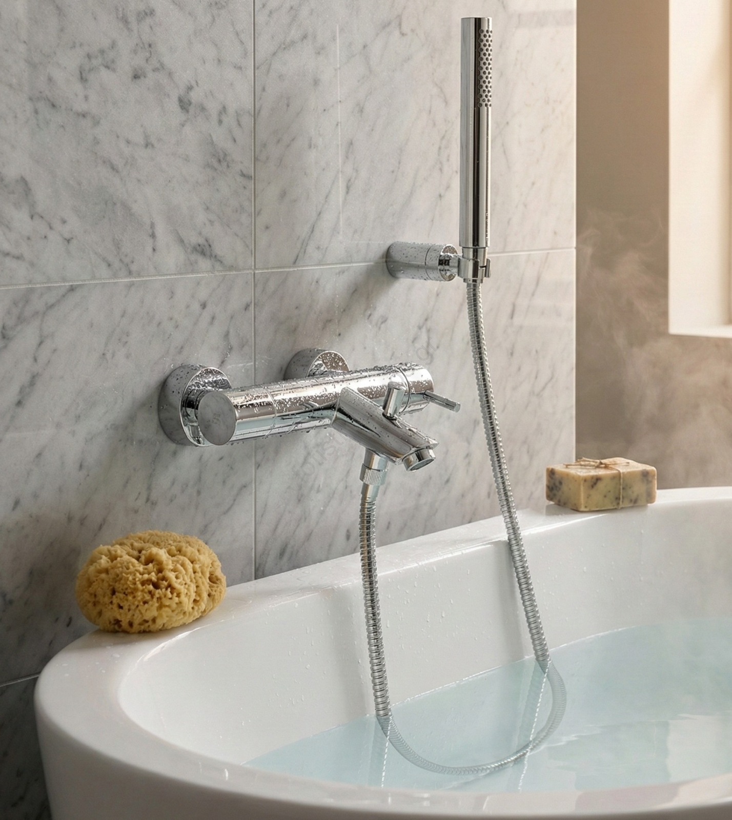 • Θερμοστατική επιτοίχια μπαταρία για μπανιέρα με σετ ντους.