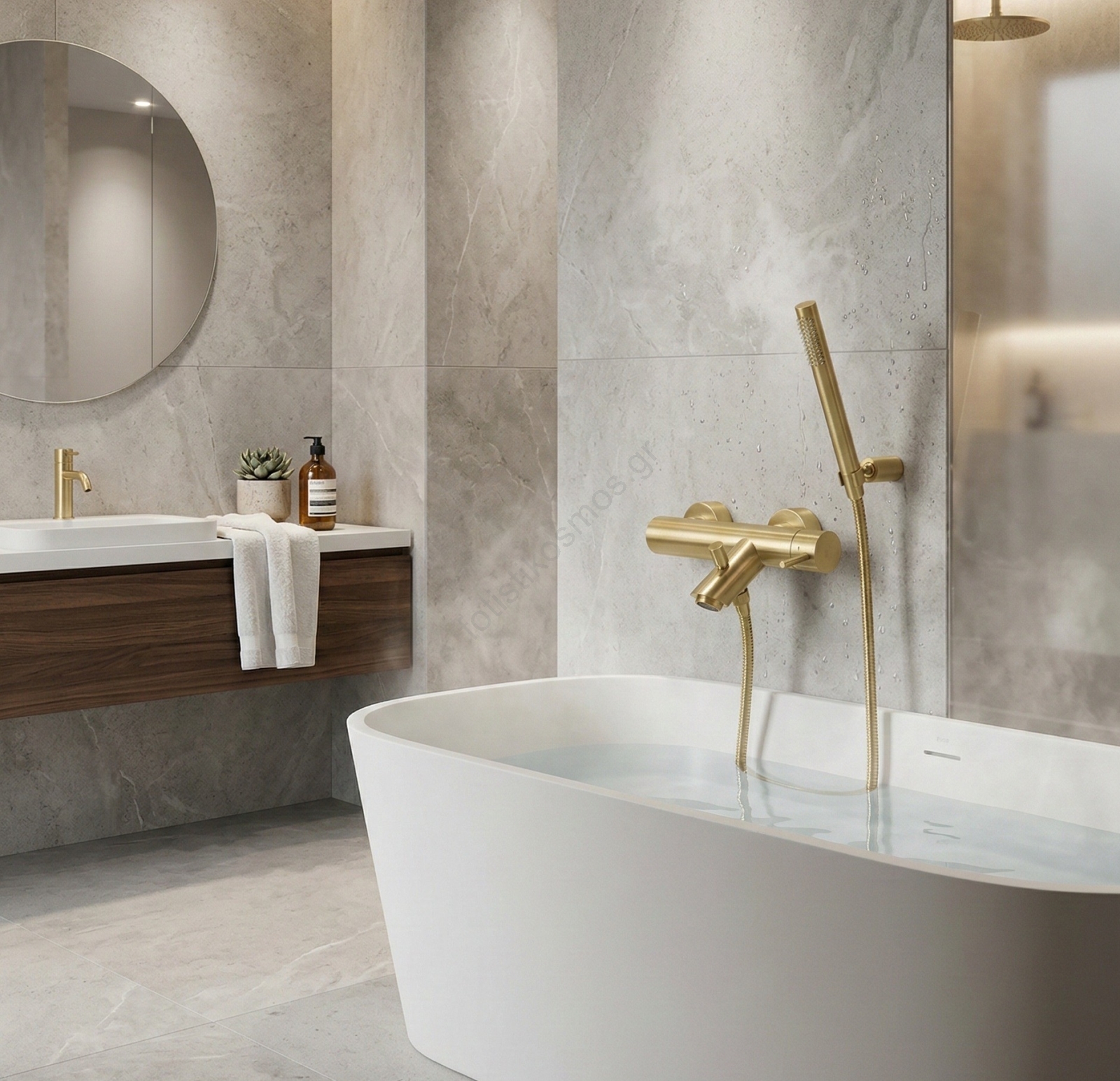 • Ματ, βουρτσισμένο χρυσό φινίρισμα για ένα κομψό μπάνιο.