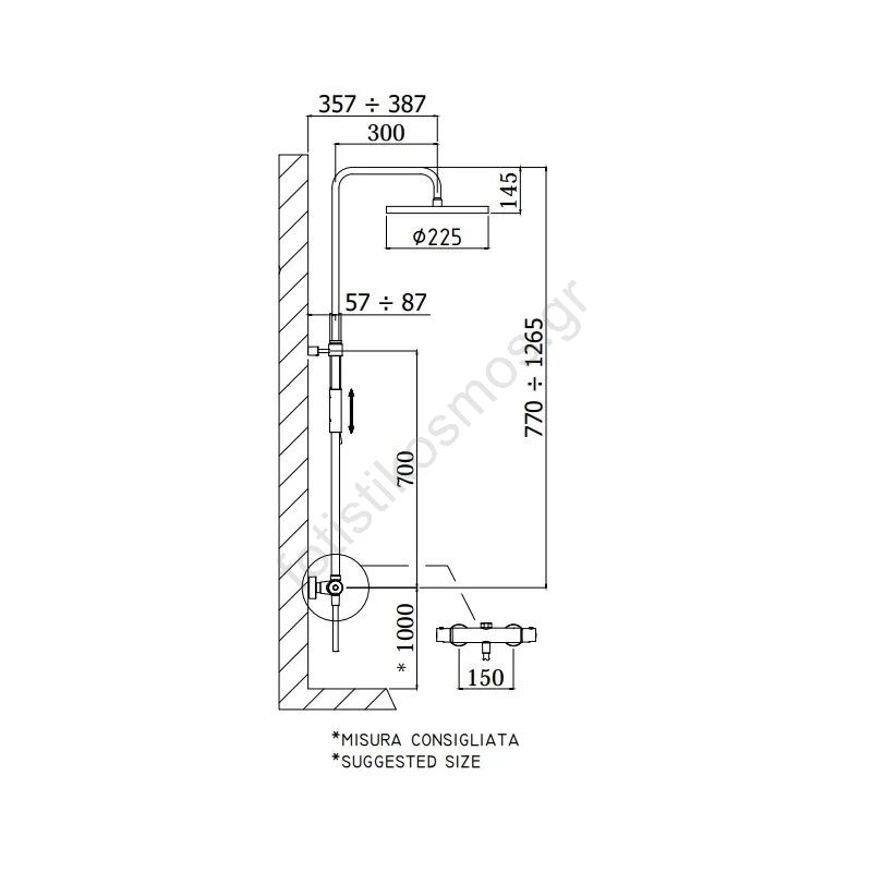 • Επιτοίχιο σύστημα ντους της σειράς Birillo.
