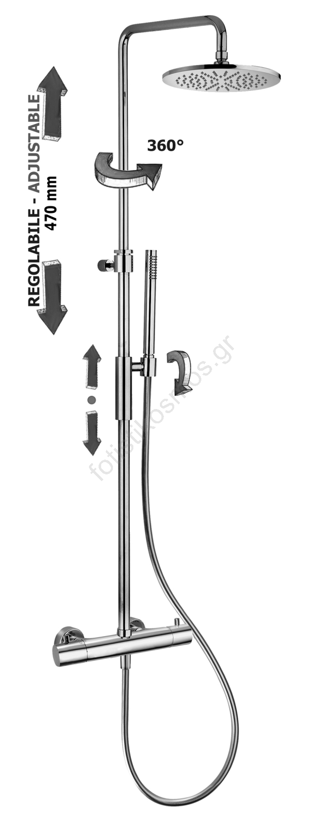 • Θερμοστατική μπαταρία για σταθερή θερμοκρασία νερού.
