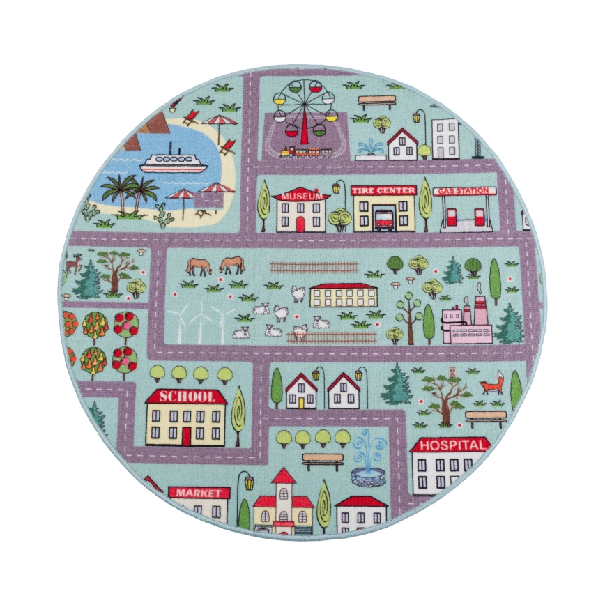 Παιδικό χαλί STELLA STREETS 120 cm τιρκουάζ/πόλη