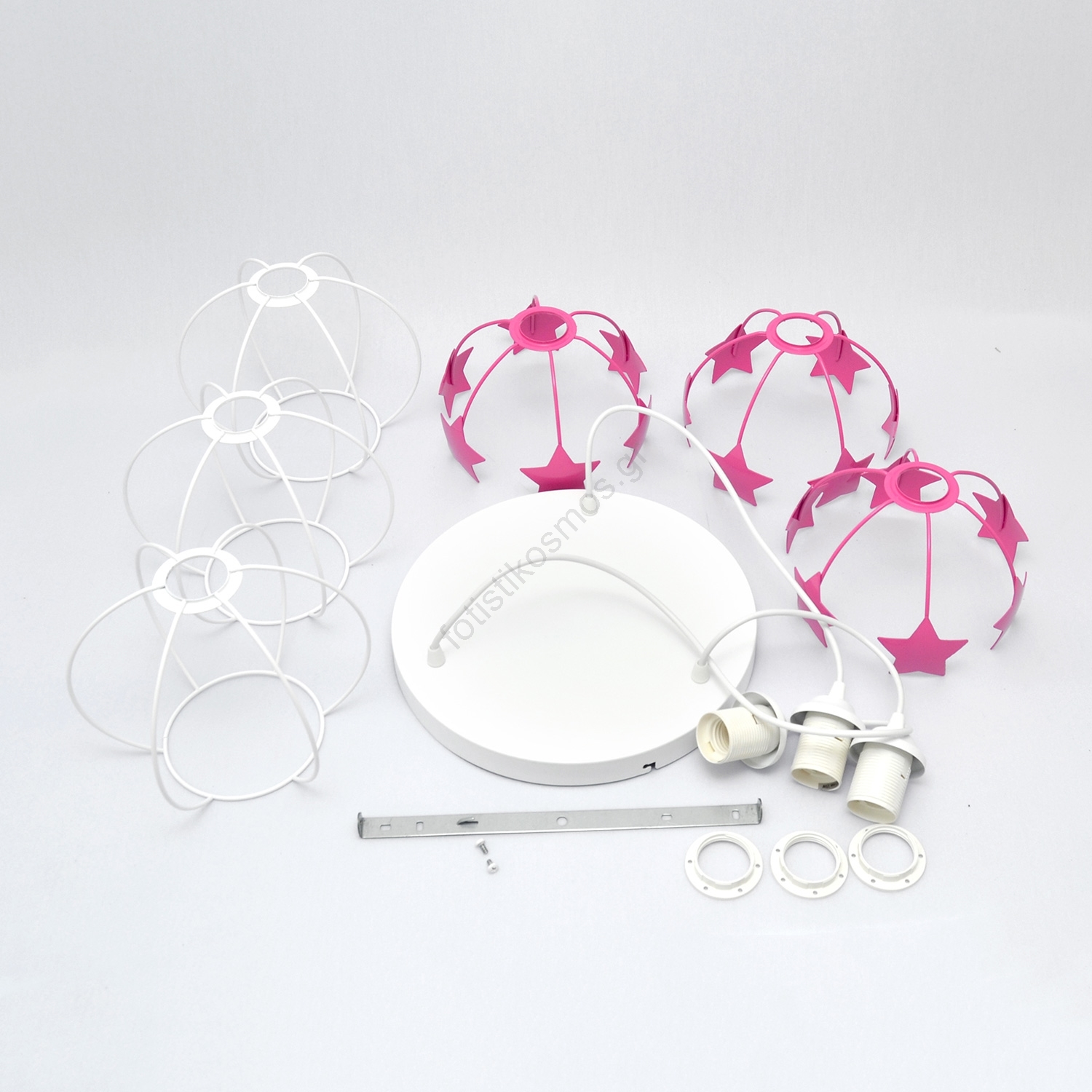 Παιδικό κρεμαστό φωτιστικό οροφής STARS 3xE27/15W/230V ροζ/λευκό | Fotisti kosmos
