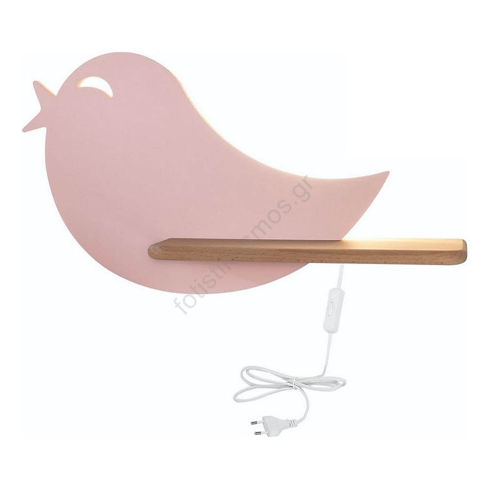 LED Παιδικό φωτιστικό τοίχου με ράφι BIRD LED/5W/230V ροζ/ξύλο | Fotisti kosmos