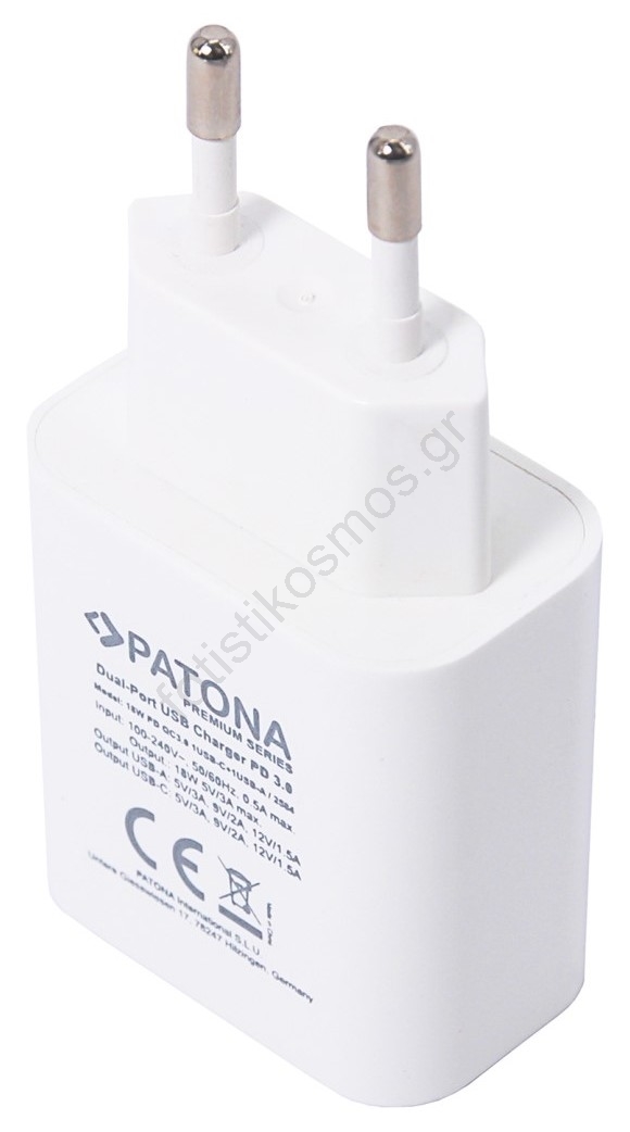 PATONA - Αντάπτορας με έξοδο USB και USB-C 18W Παροχή ρεύματος | Fotisti kosmos