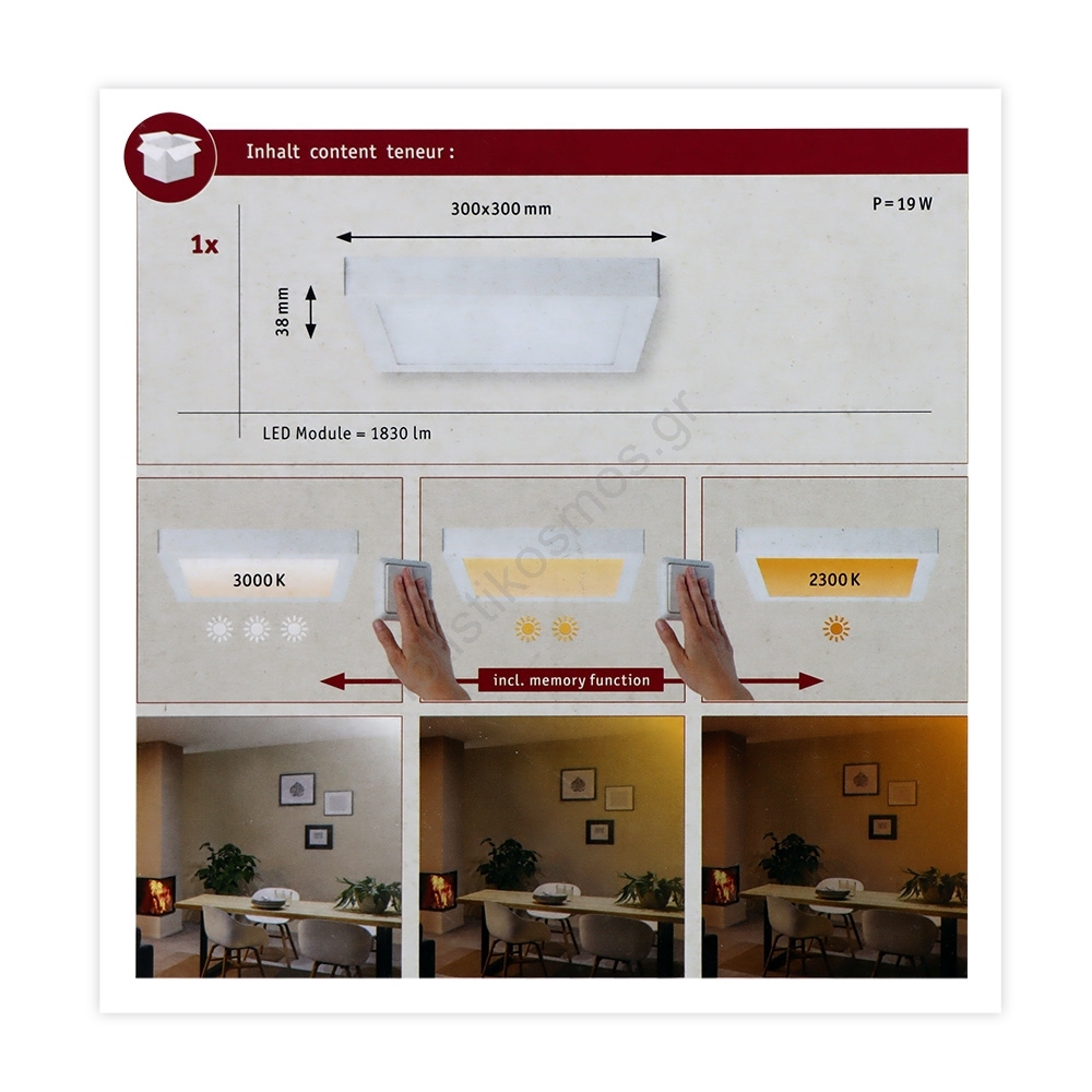 Paulmann 79801 - LED/13W Φωτιστικό οροφής CARPO 230V 2300/2500/3000K | Fotisti kosmos