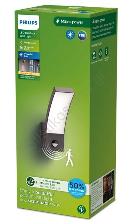 Philips - LED Φωτιστικό τοίχου εξωτερικού χώρου με αισθητήρα SPLAY LED/3,8W/230V IP44 | Fotisti kosm