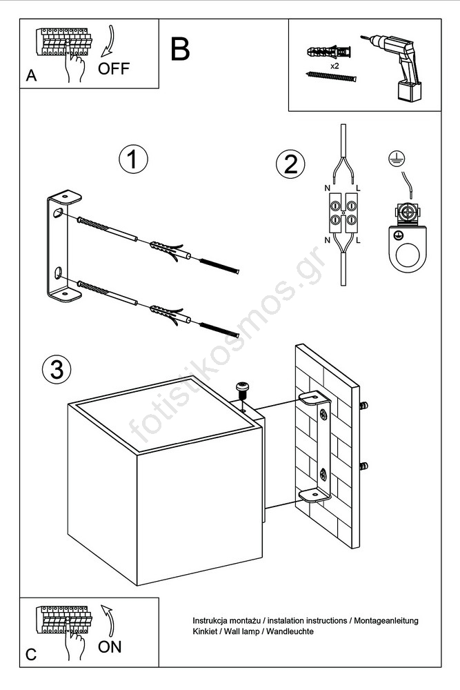 Sollux SL.0059 - Φωτιστικό τοίχου QUAD 1 1xG9/8W/230V λευκό | Fotisti kosmos