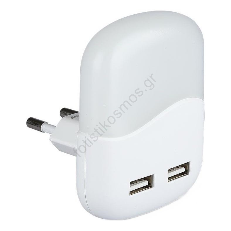 LED νυχτερινό φως με αισθητήρα λυκόφωτος, 2xUSB, 0,45W, 4000K, 230V | Fotisti kosmos