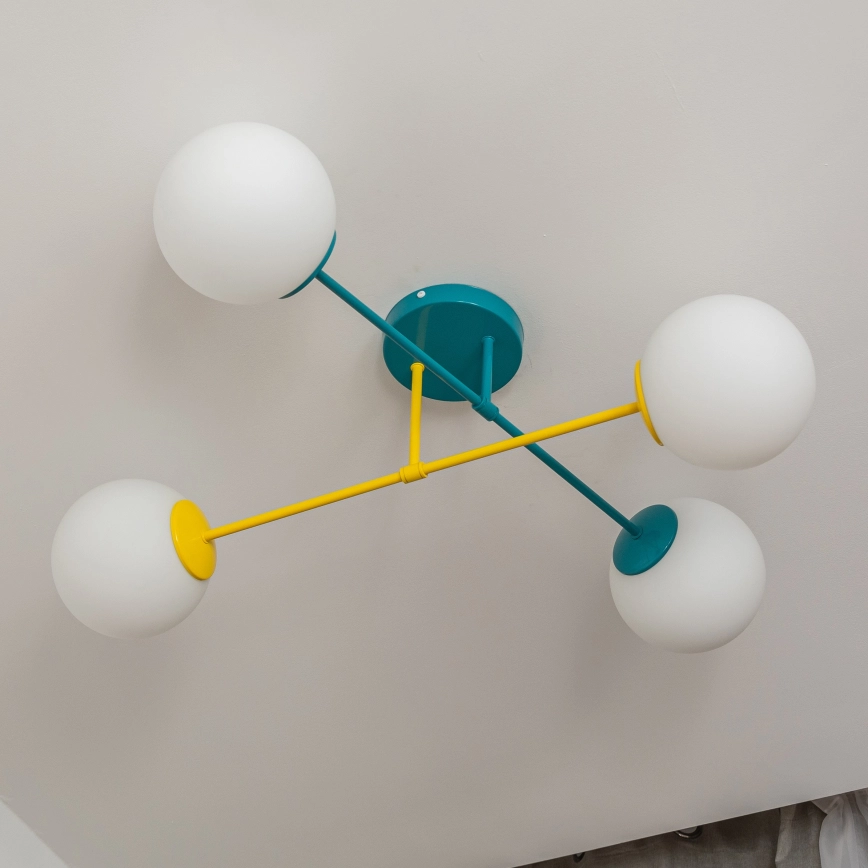 • Φωτιστικό οροφής επιφανειακής τοποθέτησης MOON 4xE27/15W/230V τυρκουάζ/κίτρινο