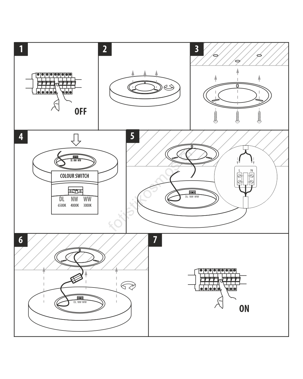 • Φωτιστικό οροφής LED 24W 230V, επιλογή θερμοκρασίας χρώματος 3000/4000/6500K, διάμ. 30 εκ., λευκό